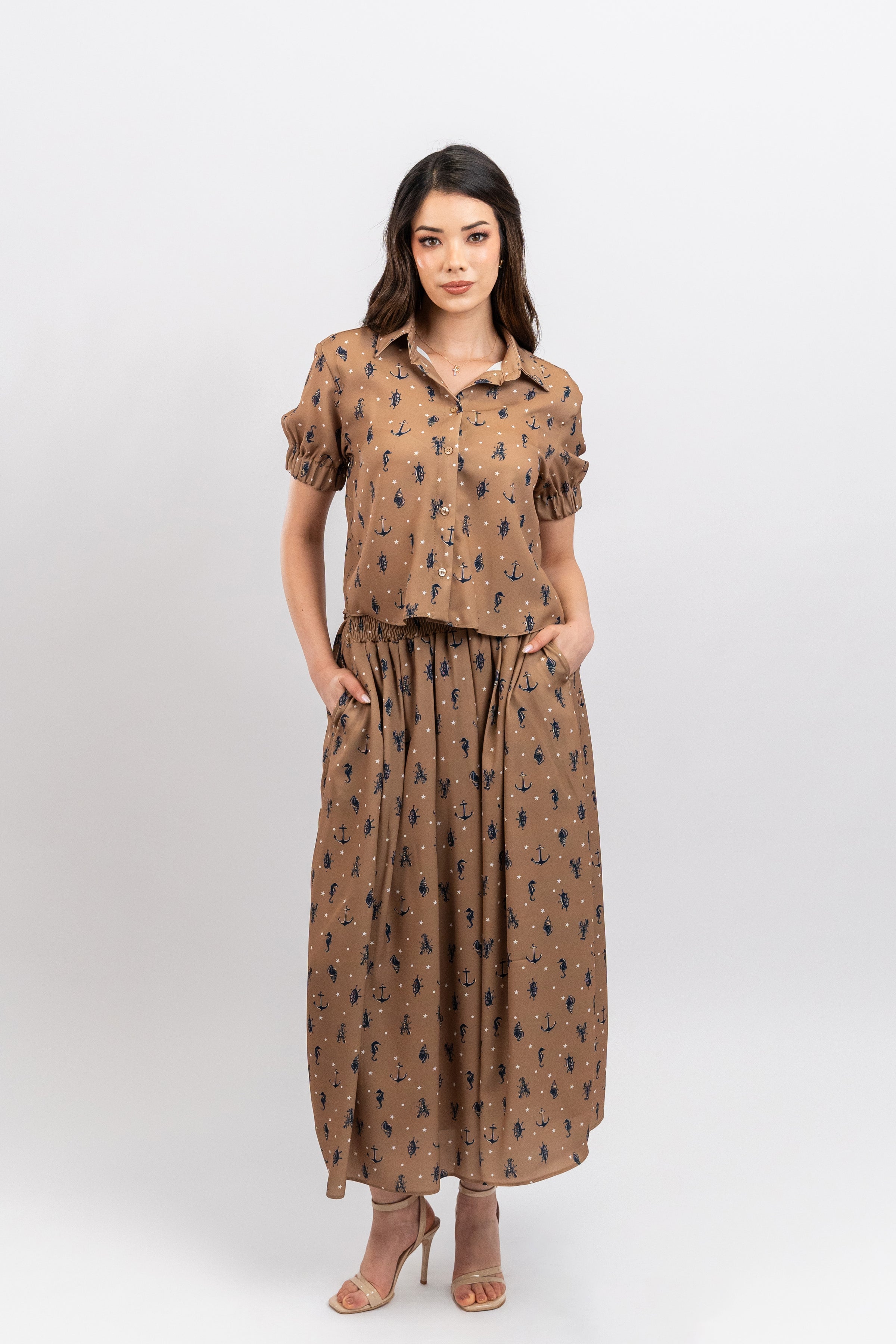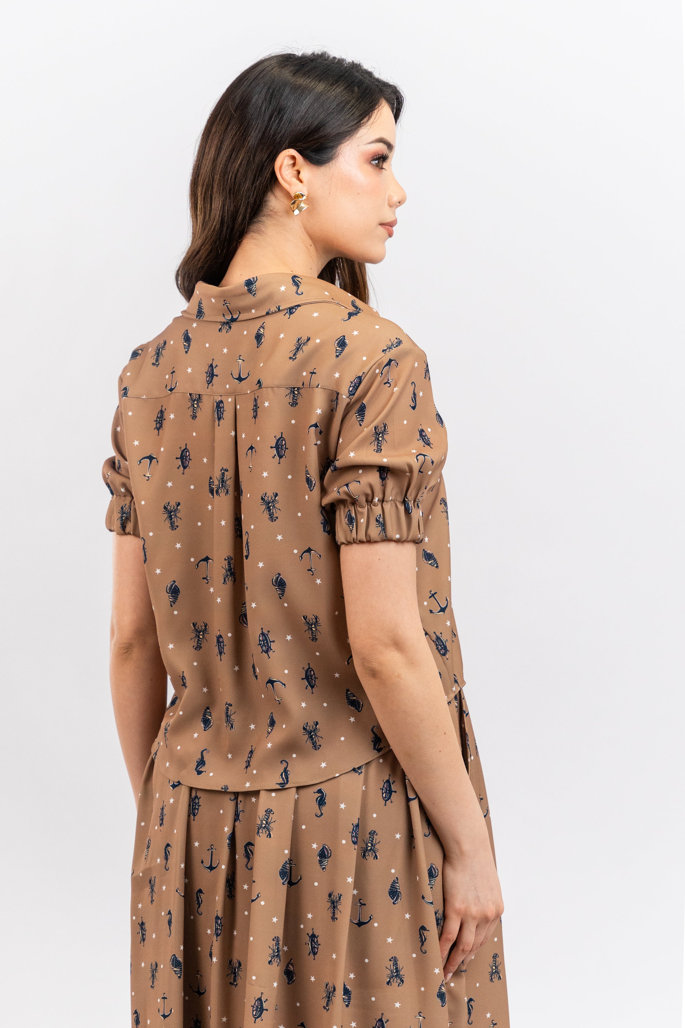 Color: Dorado con estampado de figuras marinas